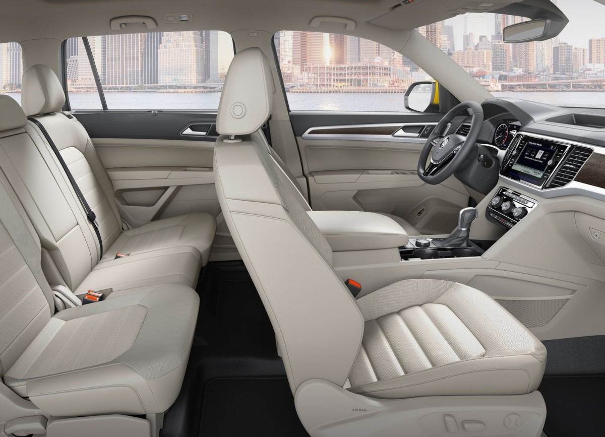 Внутрішнє оздоблення знайоме за іншими Volkswagen. Дорожчі версії Фольксваген Атлас 2017 отримали віртуальну панель приладів. Розробники стверджують, що навіть на третьому ряду помістяться дорослі пасажири.