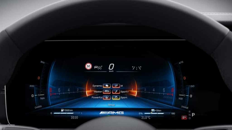Зміни у салоні незначні. У оснащення увійшла оновлена мультимедійна система MBUX, люк з електроприводом, слот для бездротової зарядки смартфона, аудіосистема Burmester та нова цифрова панель приладів.