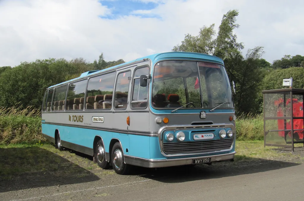 Итак, что же это за автобус, у которого две оси спереди, а одна сзади? Оказывается туристический автобус из Пущи-Водицы построен на английском шасси Bedford модели VAL70. Кузов – также местного производства, известной британской марки Plaxton. Длина автобуса – около 11 мест. Количество мест – до 52.