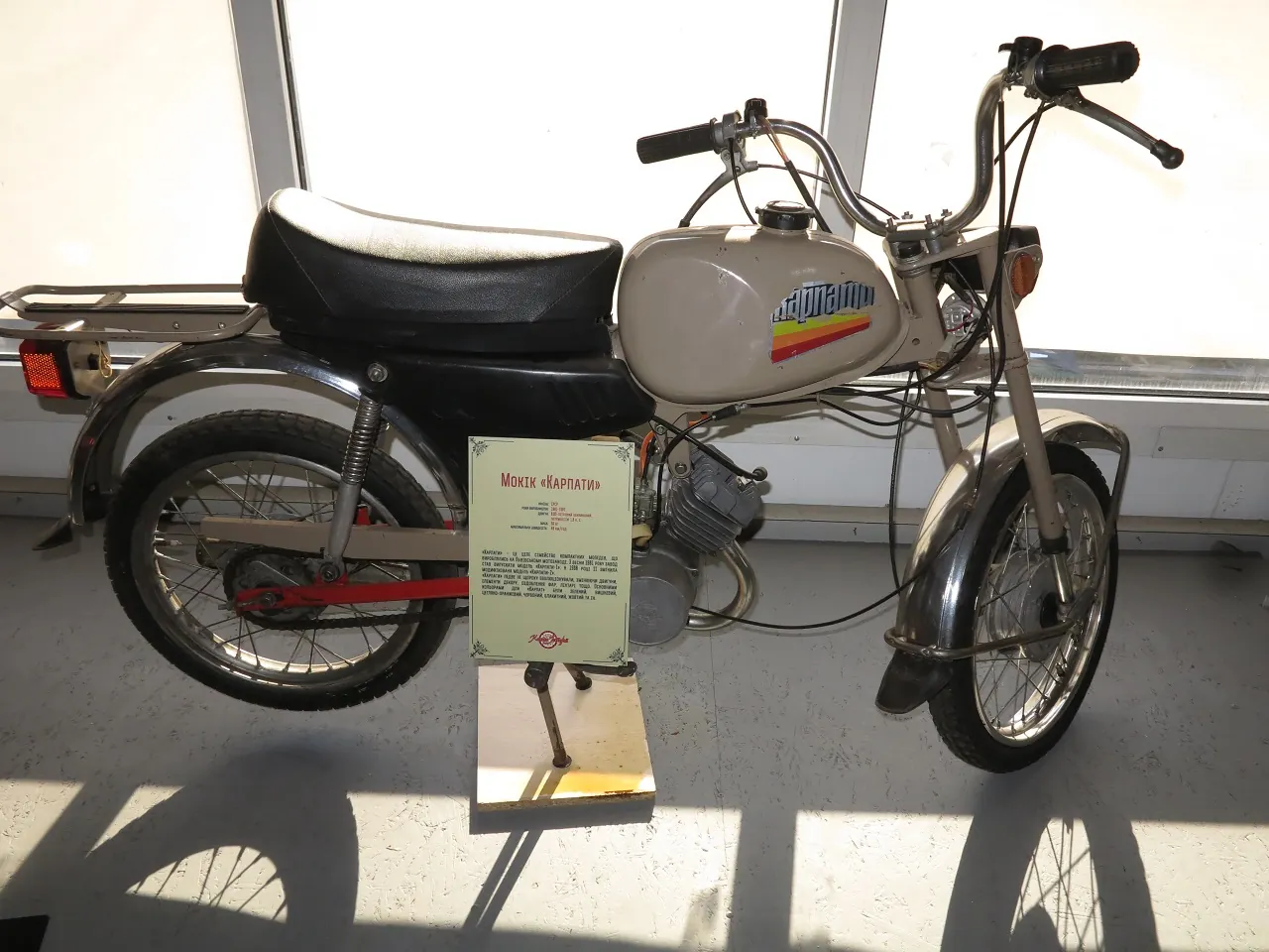 Серед легкої мототехніки, представленої в експозиції, привертає увагу «довгожитель» – мокік «Карпати». Львівський мотозавод випускав цілу родину таких моделей, починаючи з 1981 до 1997 р. Майже кожного року ці машини вдосконалювали. Представлений зразок має двигун робочим об'ємом 50 см куб. у 1,8 к. с. Машина важить 56 кг та розвиває до 48 км/год.