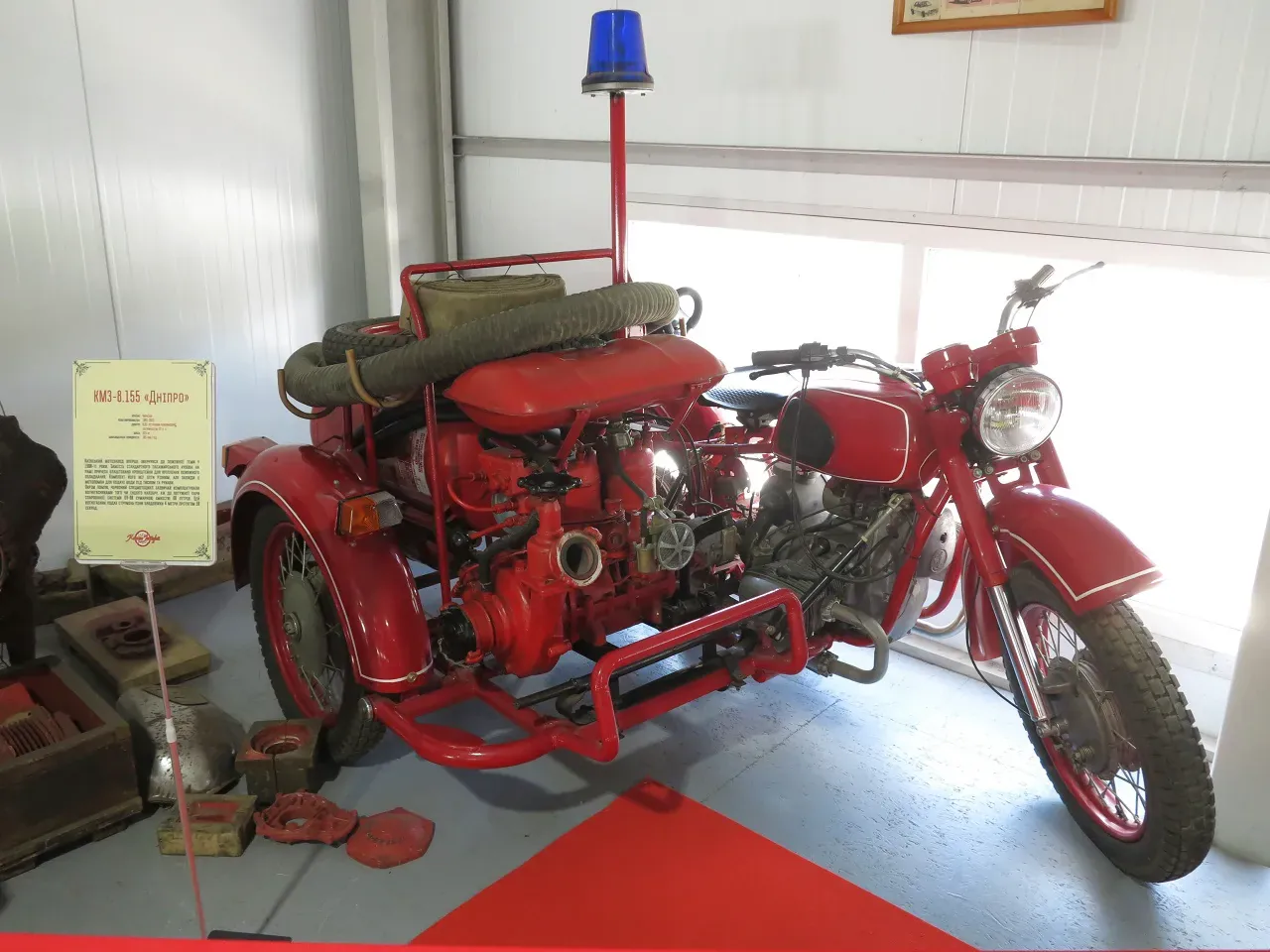 1967 року в Києві розпочався випуск потужніших мотоциклів: КМЗ-8.155, які отримали додаткове власне ім'я - «Дніпро». Двигун мав менший робочий об'єм – 650 см куб., але значно більшу потужність – 32 к. с. У музеї представлено одну з таких моделей, яка має незвичайну для мотоциклів спеціальність – вогнеборця. КМЗ почав випускати такі машини в обмежених кількостях ще у 80-ті роки. Ці так звані «самохідні пожежні установки» постачали помпу для подачі води під тиском із стороннього джерела, набором шлангів та вогнегасників.