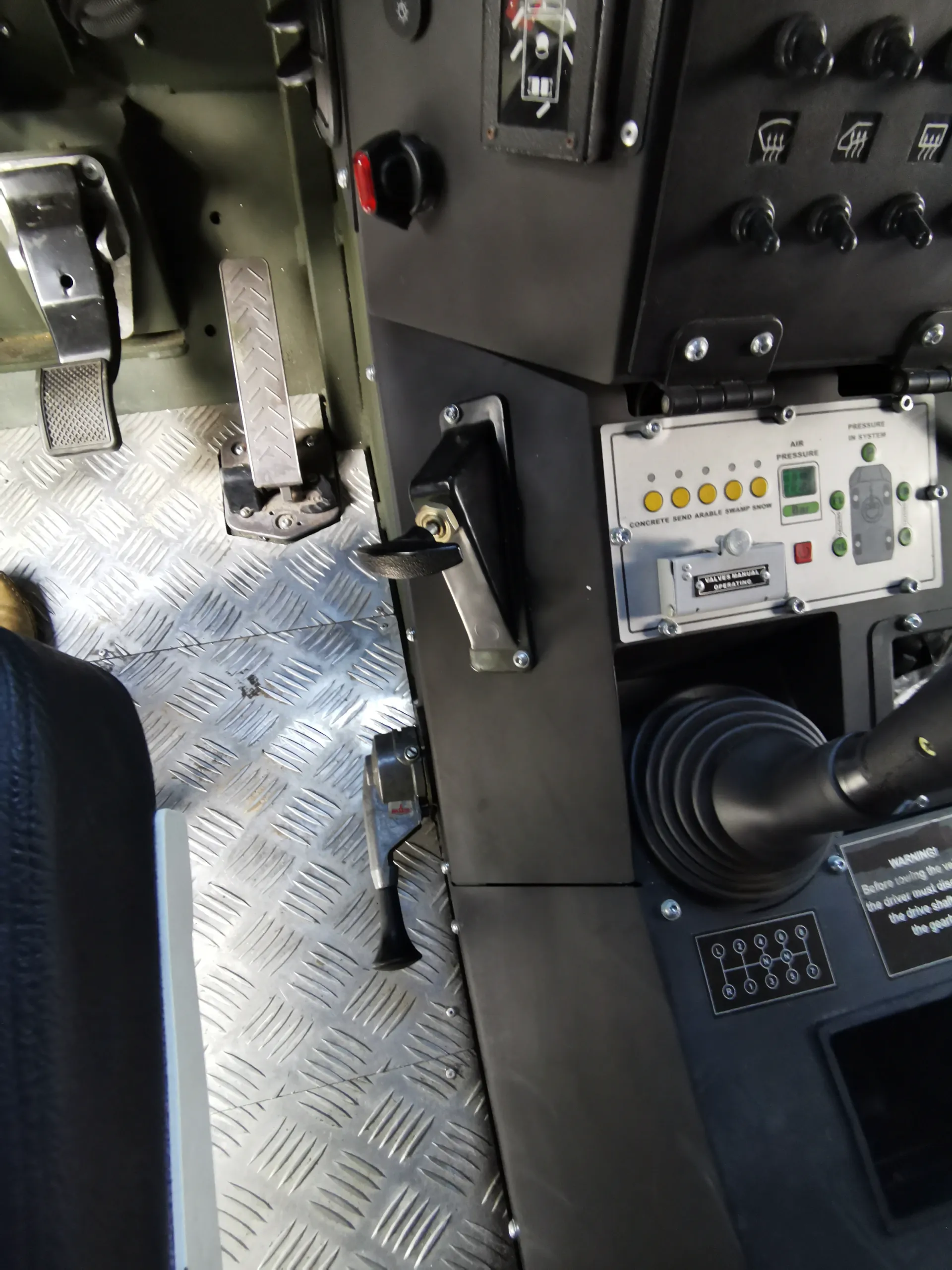Возле правой ноги установлен небольшой рычаг, который заведует тремя режимами трансмиссии: 2H, 4H и 4L. Кстати, для уменьшения расхода топлива можно отключить и муфты передних ступиц колес. При движении по шоссе с постоянной скоростью 80 км/ч машина потребляет 18 -20 л на «сотню».