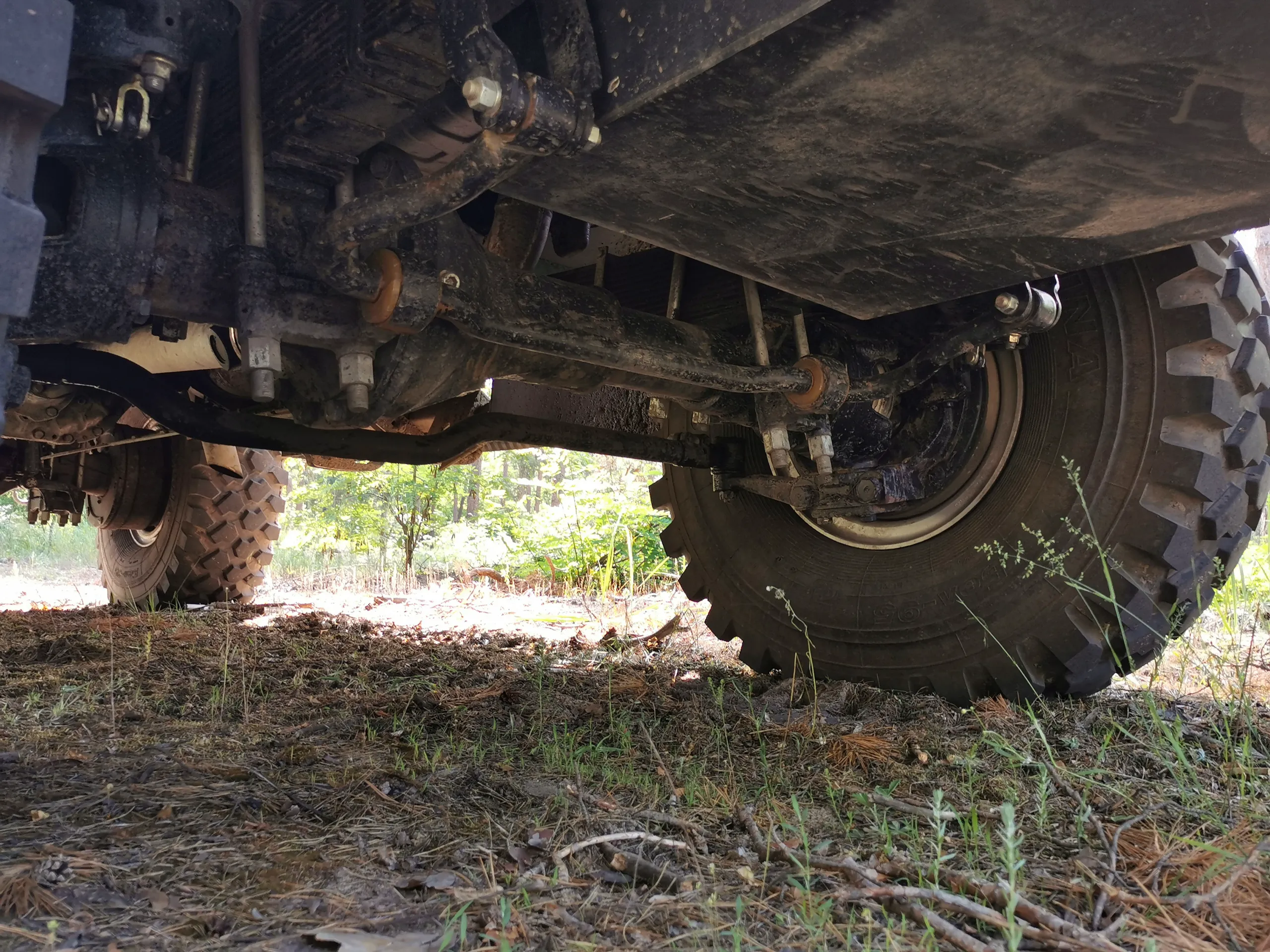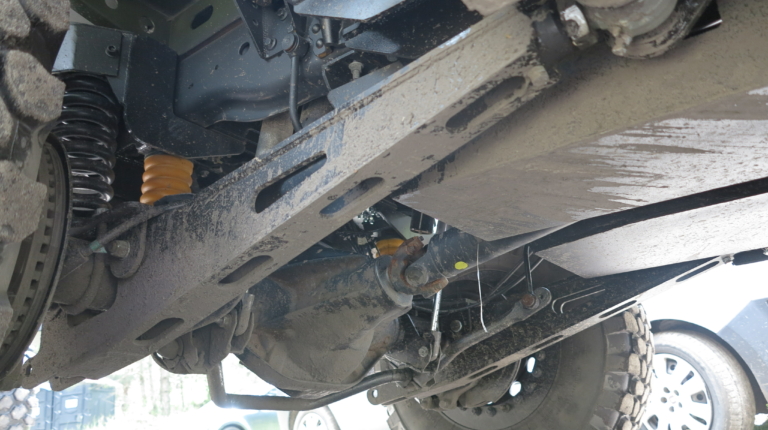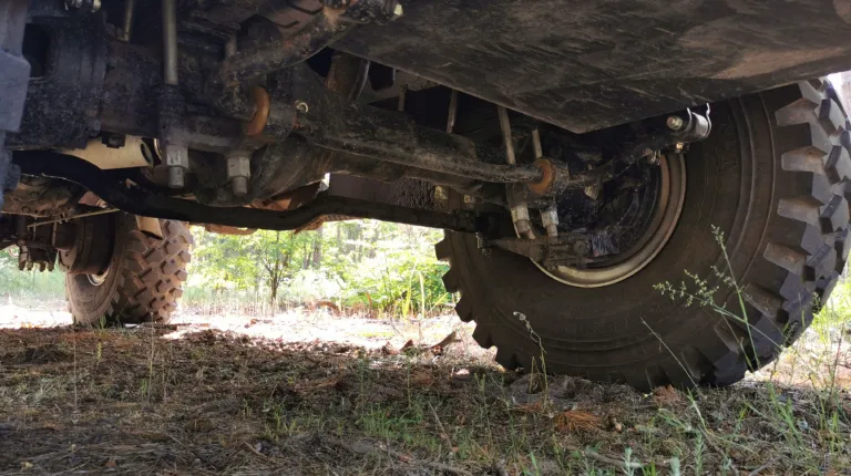 Что же касается пересеченной местности, то здесь, конечно же, выручает полный привод, а также блокируемые дифференциалы. Также стоит отметить отличную работу усиленной рессорной подвески колес. Руль легкий, однако на бездорожье держать его нужно крепко. В густом лесу отмечаем эффективные тросовые веткорезы. Хочется также похвалить камеру заднего и переднего вида, которые помогают при маневрировании.