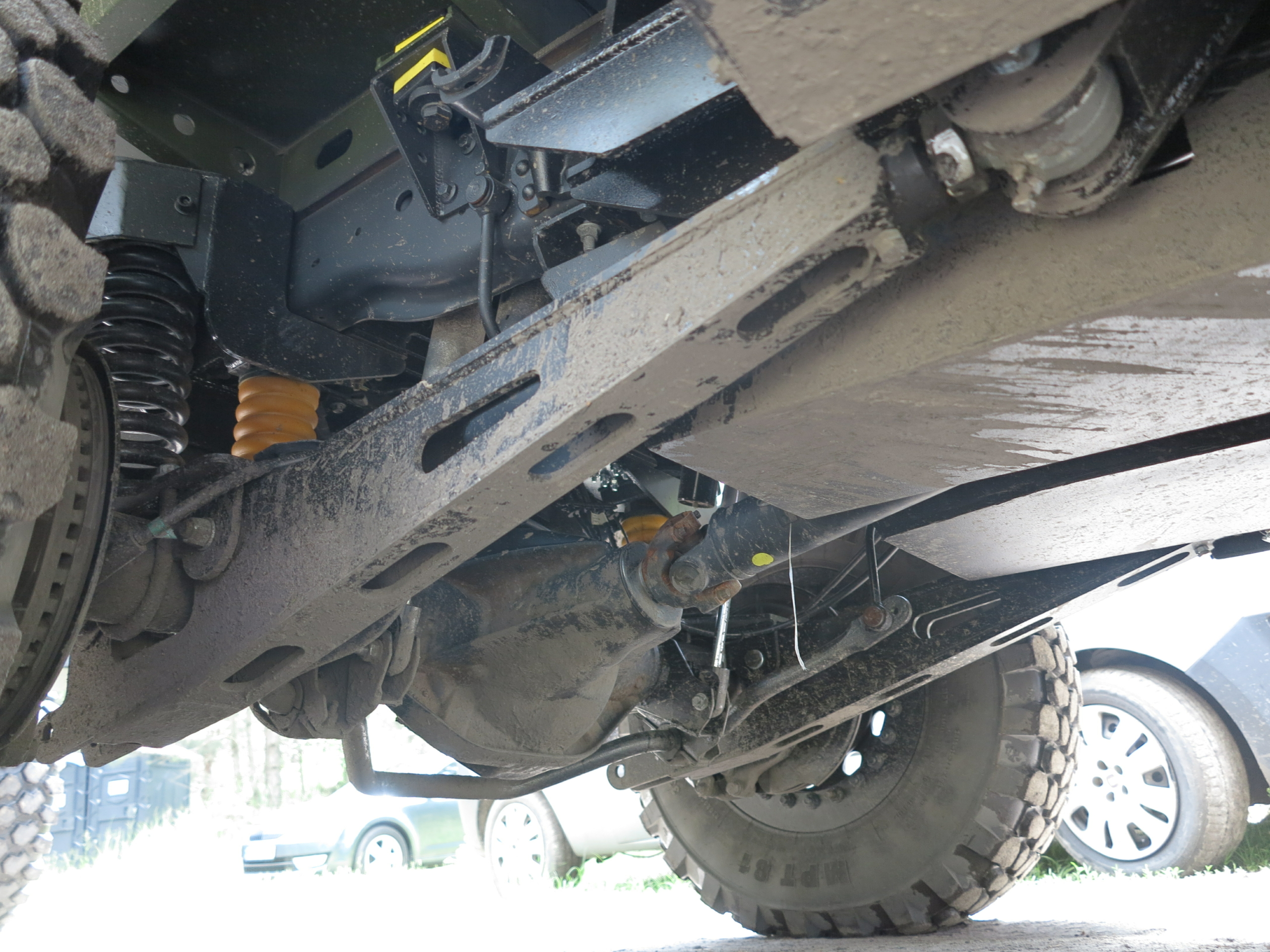 На бездорожье отмечаем большой ход пружинной подвески, что позволяет преодолевать довольно глубокие ямы. Машине также под силу и броды глубиной до 0,75 м. Шины имеют вставки Run-Flat, которые позволяет при полной потере давления проехать до 40 км.