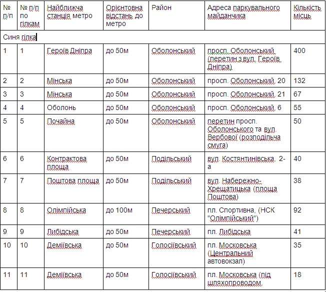 Однак для деяких людей важливий також час, проведений у заторах, тому їм цілком можуть знадобитися парковки біля станцій метро, нехай навіть платні. Саме для таких людей підприємство Київтранспарксервіс запропонувало список майданчиків, де людина може залишити машину і далі поїхати містом на метро.