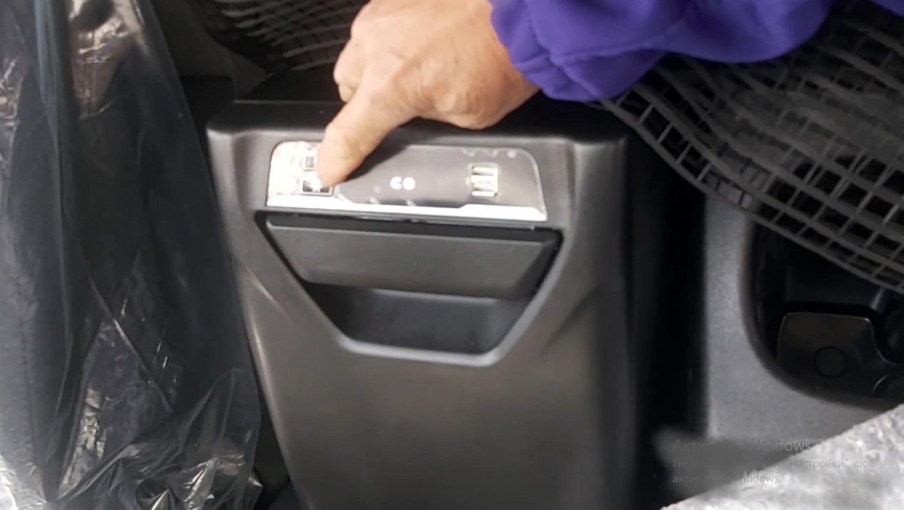 А теперь заглянем в кабину водителя. Из наиболее ярких отличительных элементов интерьера отметим поворотный дисплей мультимедийной системы наверху приборной панели, а также выдвижной холодильник между сиденьями, на котором расположены кнопки управления температурой.