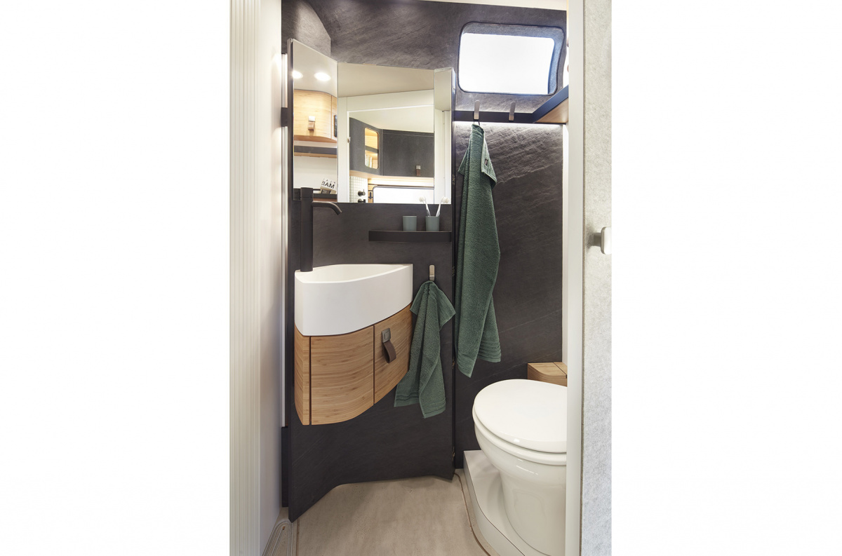 Отже, Hymer VisionVenture складено на повнопривідному шасі Mercedes-Benz Sprinter третього покоління. Насамперед відзначимо цікавий за дизайном кузов, покритий спеціальним лакофарбовим покриттям, що дає змогу в спекотну погоду зменшувати температуру зовнішніх панелей. Так, при охолодженні кузова на 20 С, температуру в салоні вдається зменшити на 4 С.