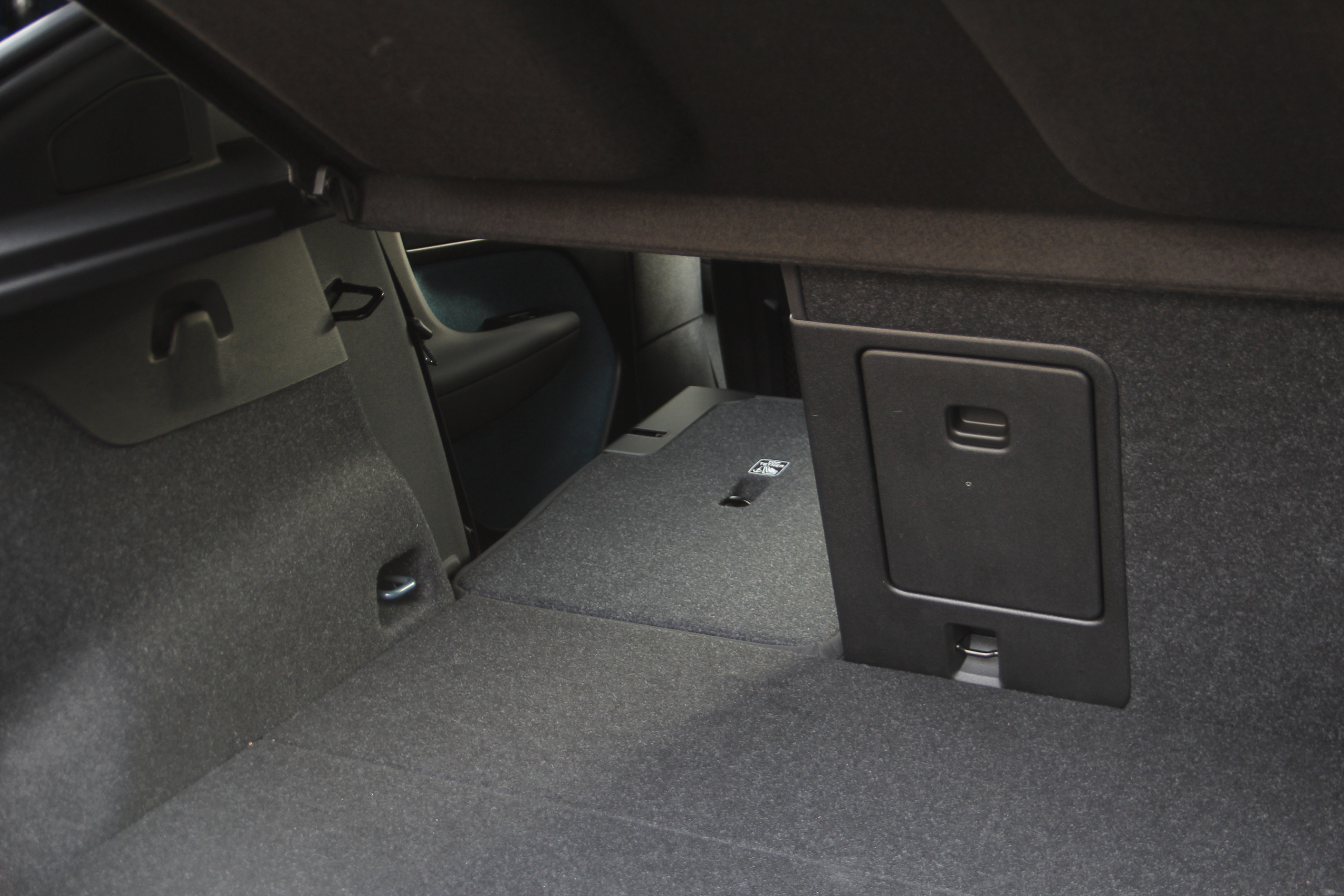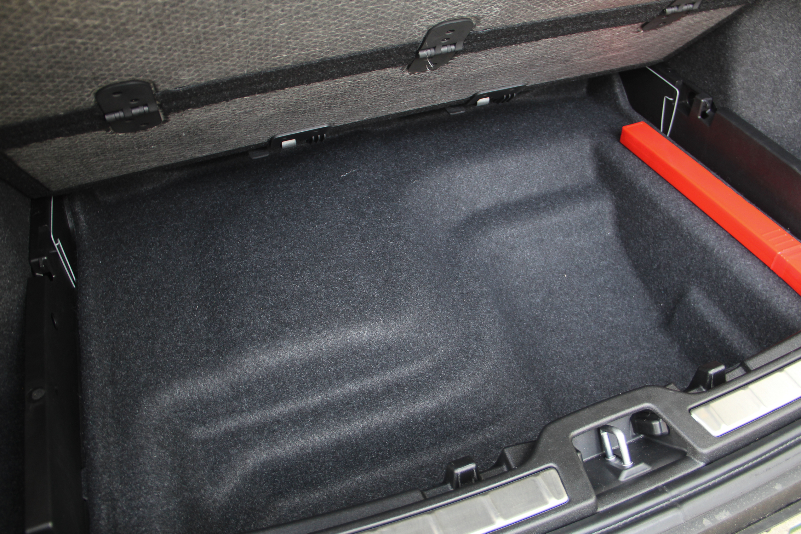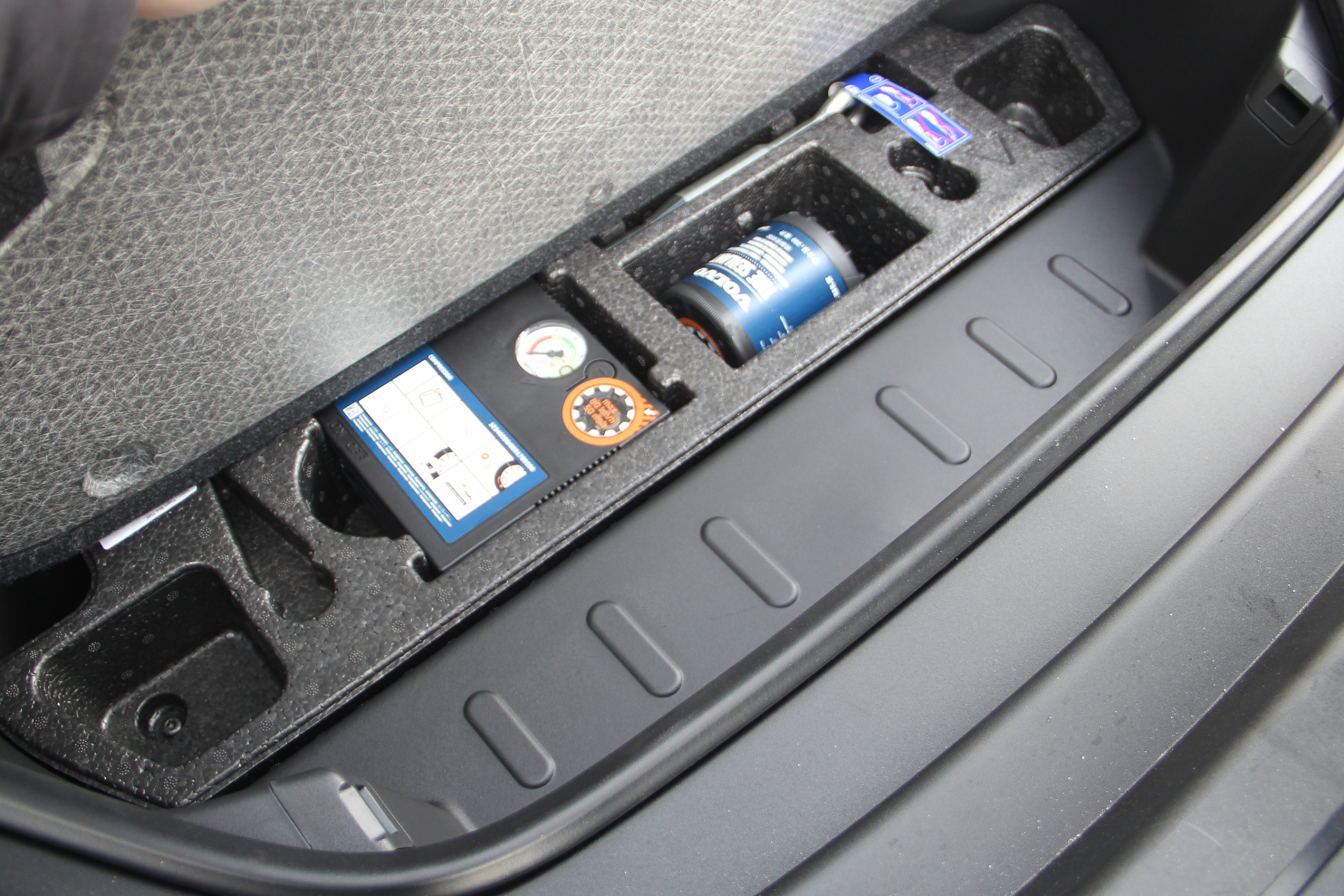 Не ущемлен и багажник. Здесь он даже чуть выше от пола до шторки (а точнее полки), поэтому и объем получился 431 литр. Войлочная обивка, переставляемый и складываемый секционно фальшпол, средних размеров ниша под ним и две небольшие по бортам; складываемые по частям спинки второго ряда и лючок для длинномером – все довольно практично. Да, запаски здесь нет и близко, а ремкомплект следует искать под… капотом. Ведь там есть небольшой багажник-довесок. Это ниша для хранения зарядных кабелей, в которой и прячется набор для временного ремонта проколов.