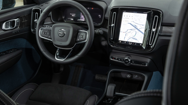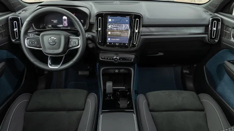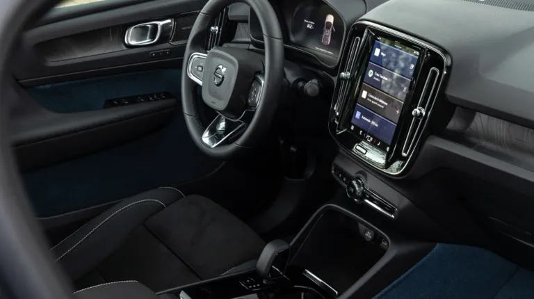 Знакомо организованное водительское место как и в XC40 радует лаконичностью и эргономикой. А еще новой мультимедийной системой под управлением Android Automotive OS. И хотя Андроид уже давно используется в наших с вами смартфонах, в автомобильной индустрии он пошел в серию только в 2020 году. Привычные нам сервисы Google уже зашиты в память устройства, а скачать дополнительное по необходимости можно с помощью Google Plaу. Впрочем пользовательский интерфейс мало чем отличается от того, что был на прежних Volvo, разве что добавили чуть больше красок и сочности.