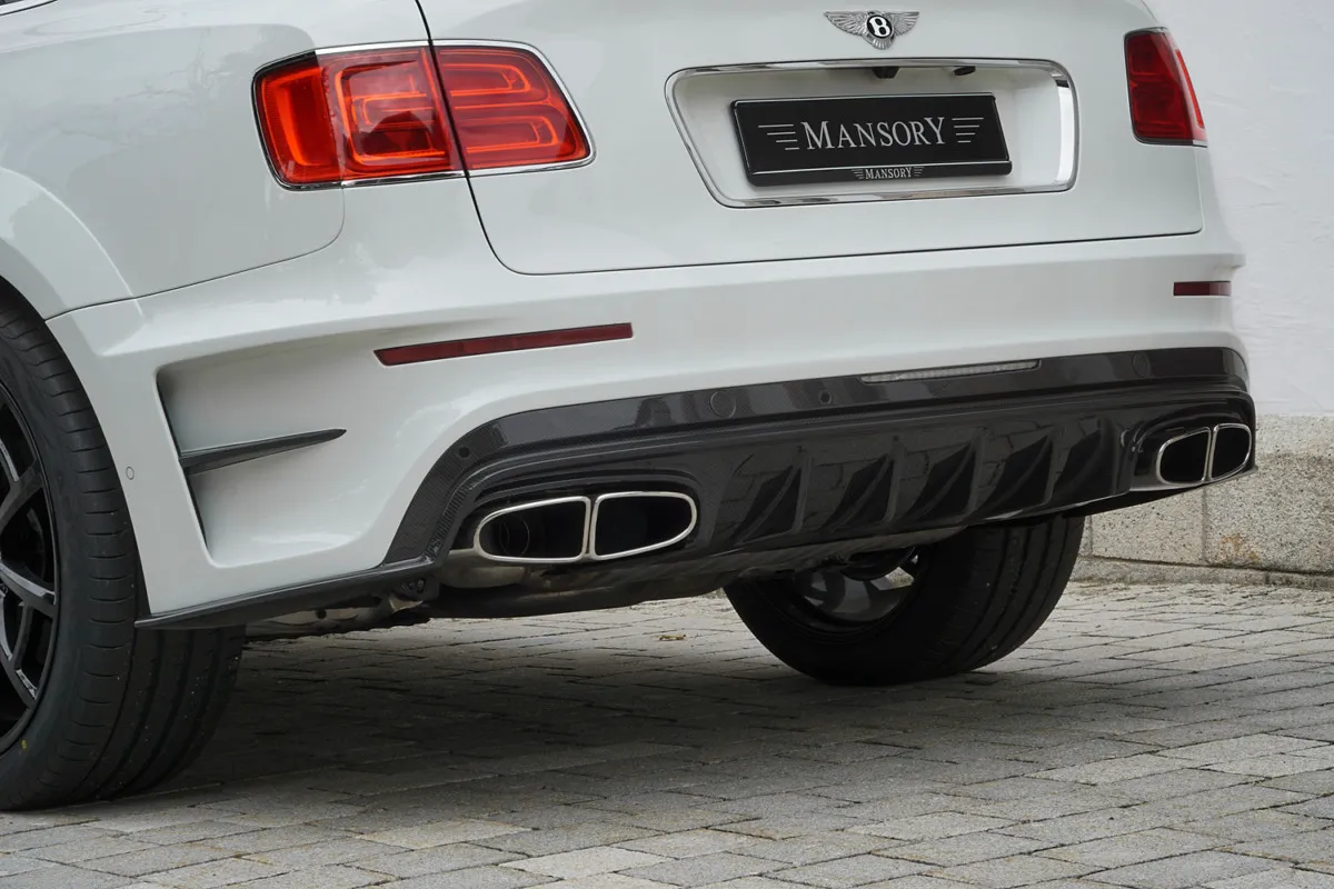 По сравнению с «обычным» Бентли Бентайга, тюнингованный Bentayga Bentayga Mansory выделяется довольно броским и агрессивным обвесом кузова с карбоновыми элементами, а также 23-дюймовыми дисками и полностью перешитым салоном.