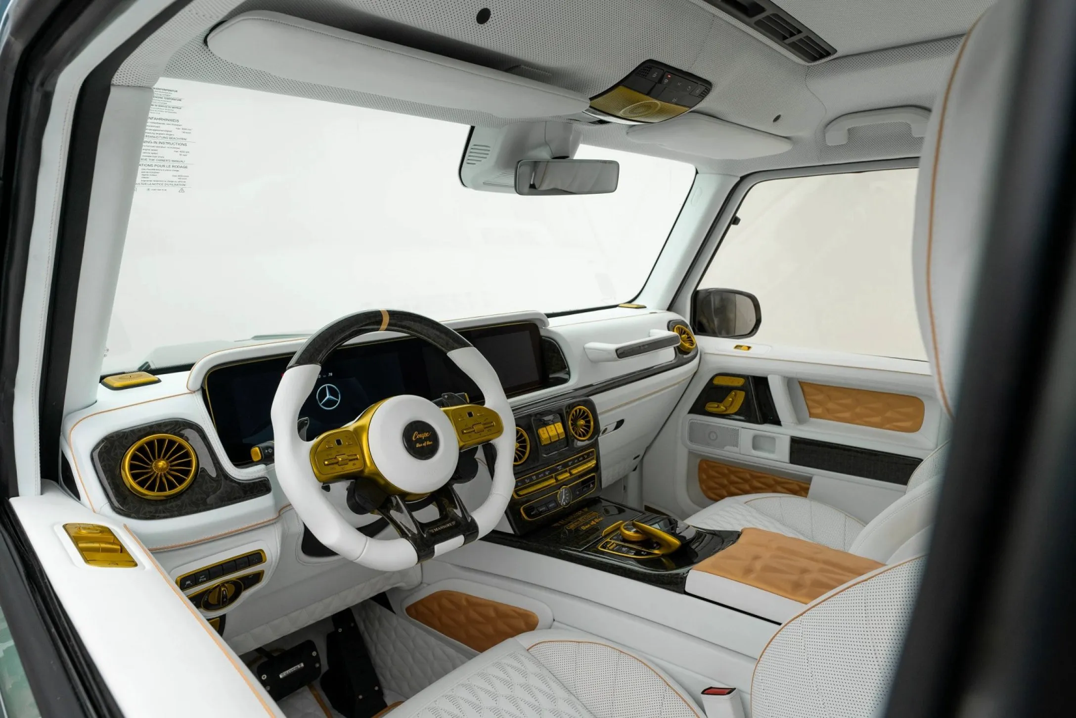 Головна особливість тюнінгованого Гелендвагена — двері, які відкриваються проти руху автомобіля. Для встановлення інженерам довелося подовжити передні двері, перемістити назад центральну стійку й перенести на неї дверні петлі. Із урахуванням цих змін перероблено аеродинамічне вуглепластикове кузовне обважування, запозичене у базового Mansory Gronos Evo S. Кузов пофарбували у колір Fludium Paint Chrome Atmospher. Доповнили образ нові 24-дюймові колісні диски FD.15.