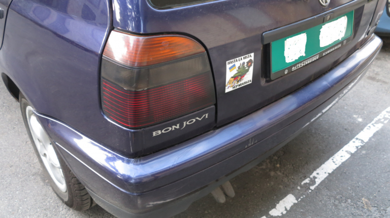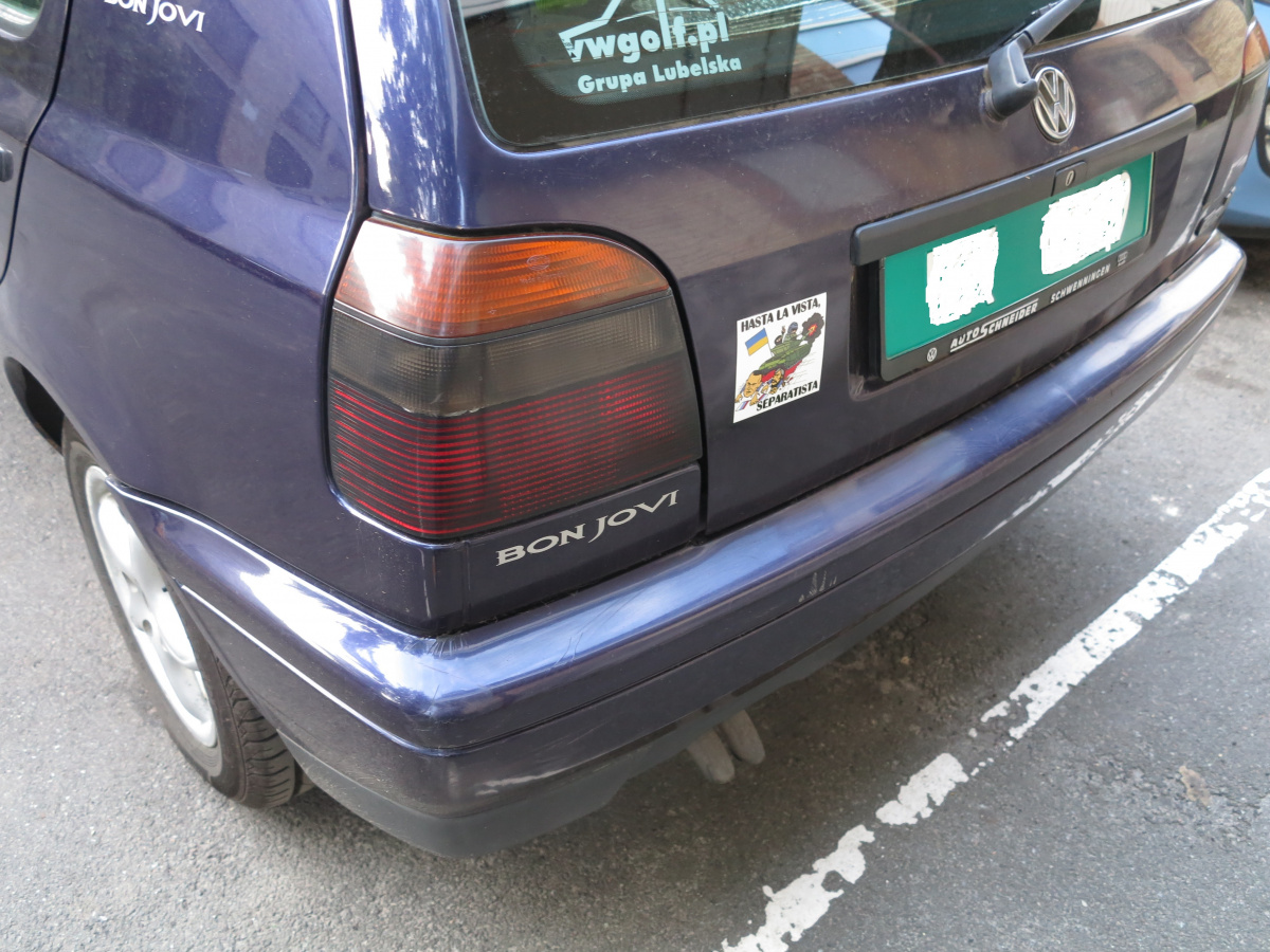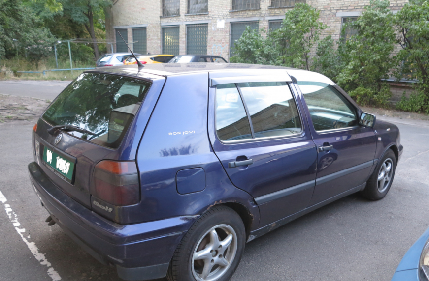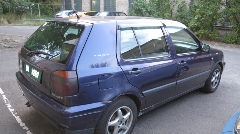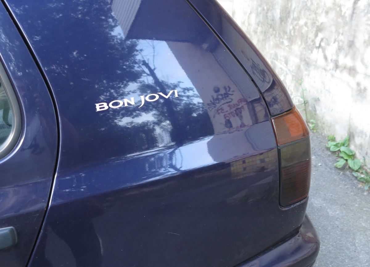 Цей Volkswagen Golf третього покоління нещодавно з’явився на столичних дорогах. Машина одразу привертає увагу незвичайними номерними знаками миротворчих підрозділів. Проте ця особливість автомобіля розкривається, якщо підійти до нього ближче. На задній стійці і кормі помічаєш написи Bon Jovi. Виявляється, перед нами цікаве виконання на честь популярної американської рок-групи Bon Jovi.