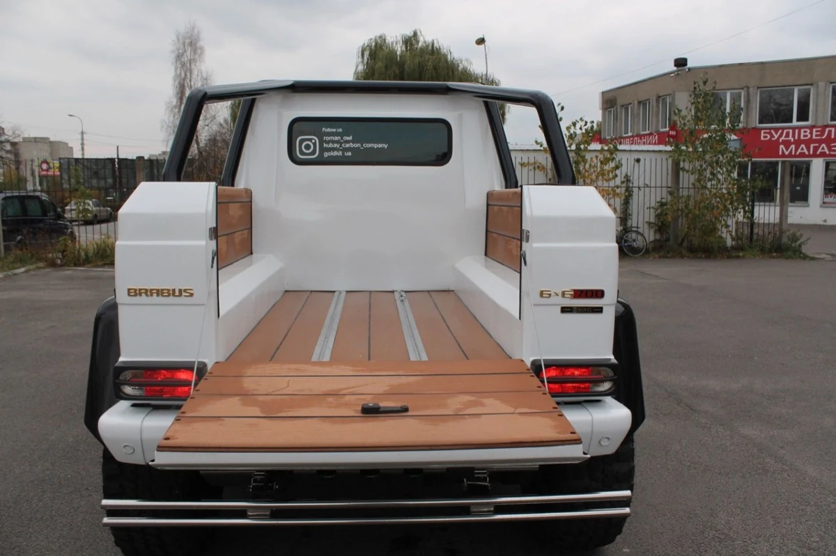 Конкретно этому проекту стоит отдать должное – в его основе лежит оригинальный Гелендваген, пускай и G500 1999 года. Более того, мастера сумели оснастить вездеход действительно полным приводом, сделав все три моста ведущими. А кузовные панели, вроде задних крыльев, были изготовлены по оригинальным чертежам.
