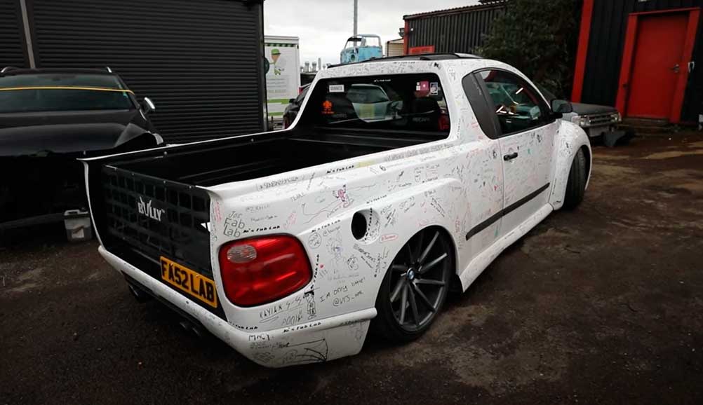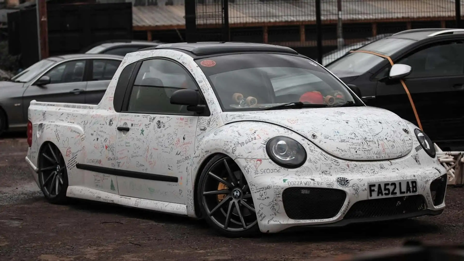 Зі слів власника ательє та унікального пікапа, він зібраний із двох автомобілів: універсалу BMW E46 та Beetle. На першому він розбив передню підвіску, а у «Жука» дружини «зварив» двигун через поганий термостат. Частину деталей запозичили у Ford F-150, Peugeot 206 та Porsche Cayman. Загалом реалізація проєкту зайняла 18 тижнів.
