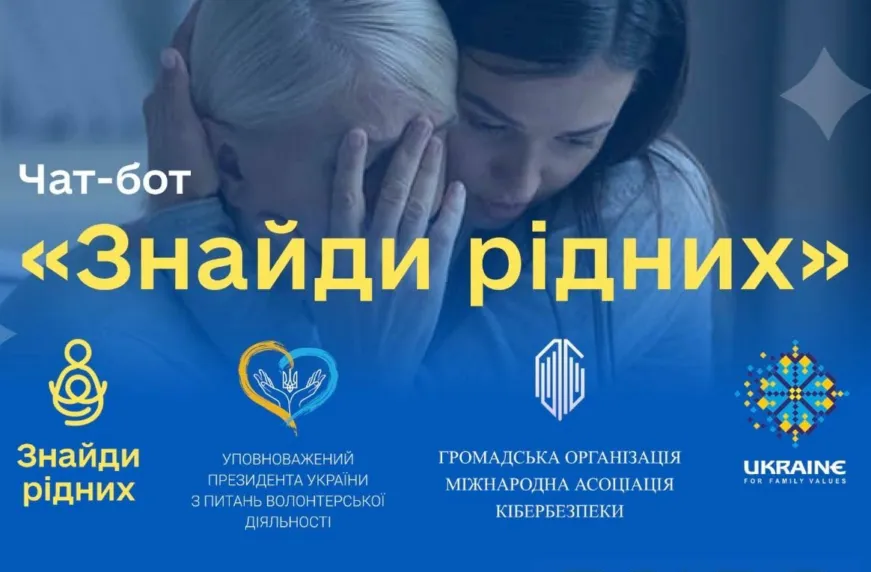 Громадська організація «Міжнародна асоціація кібербезпеки» спільно з «Центром Методик та Координації Криптографічного розвитку», міжнародним жіночим рухом «За сімейні цінності» та за підтримки Уповноваженого Президента України з волонтерської діяльності створила чат-бот для пошуку зниклих рідних – «Знайди рідних».