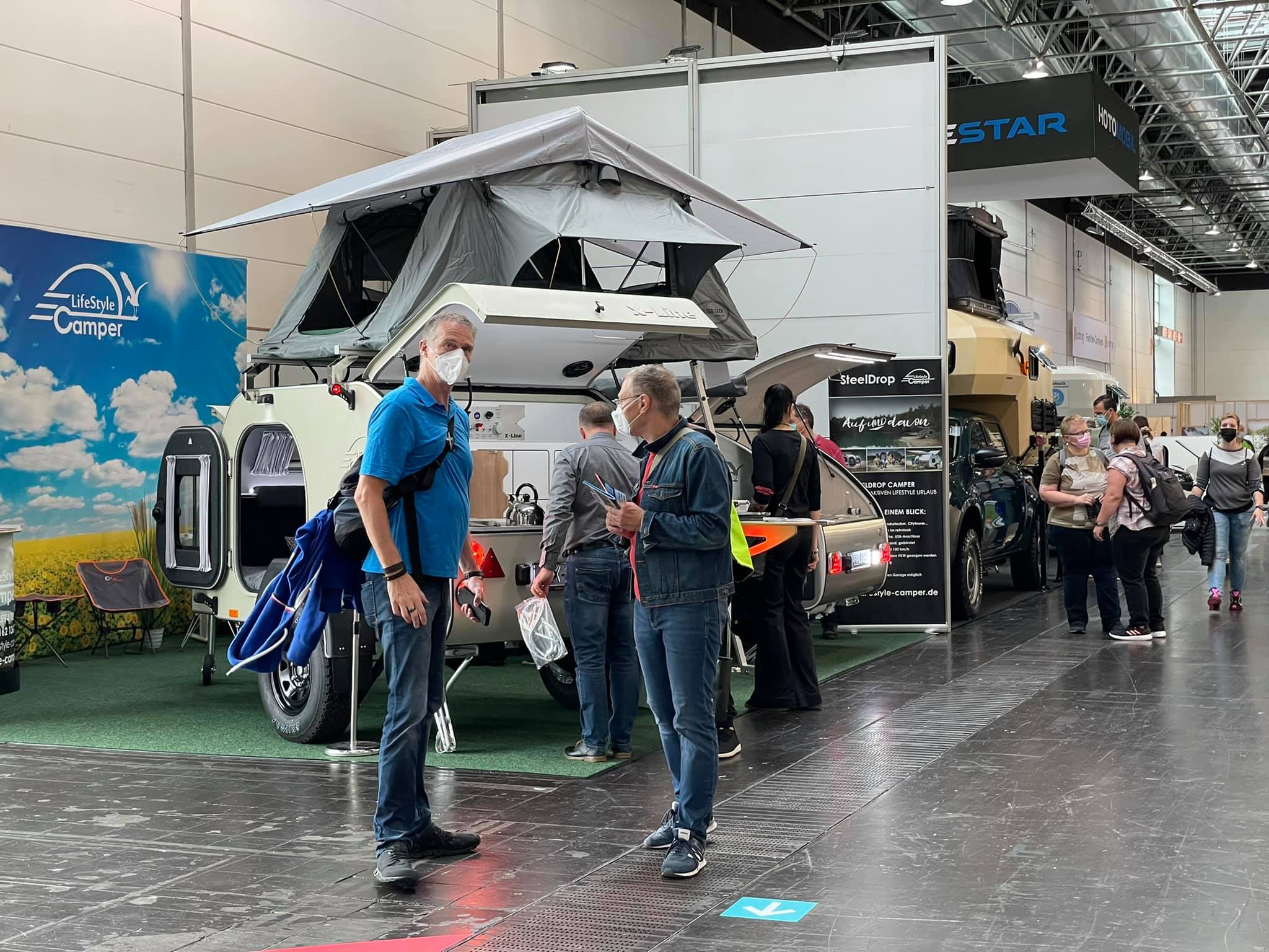 Отрадно, что наша компания уже четвертый раз принимает участие на такой престижной выставке и как всегда оказывается в центре внимания со своей яркой продукцией: прицепными кемперами в форме капли. На этот раз она показала классическую модель SteelDrop, а также внедорожную – X-Line, оборудованную эффектной раскладной палаткой на крыше.