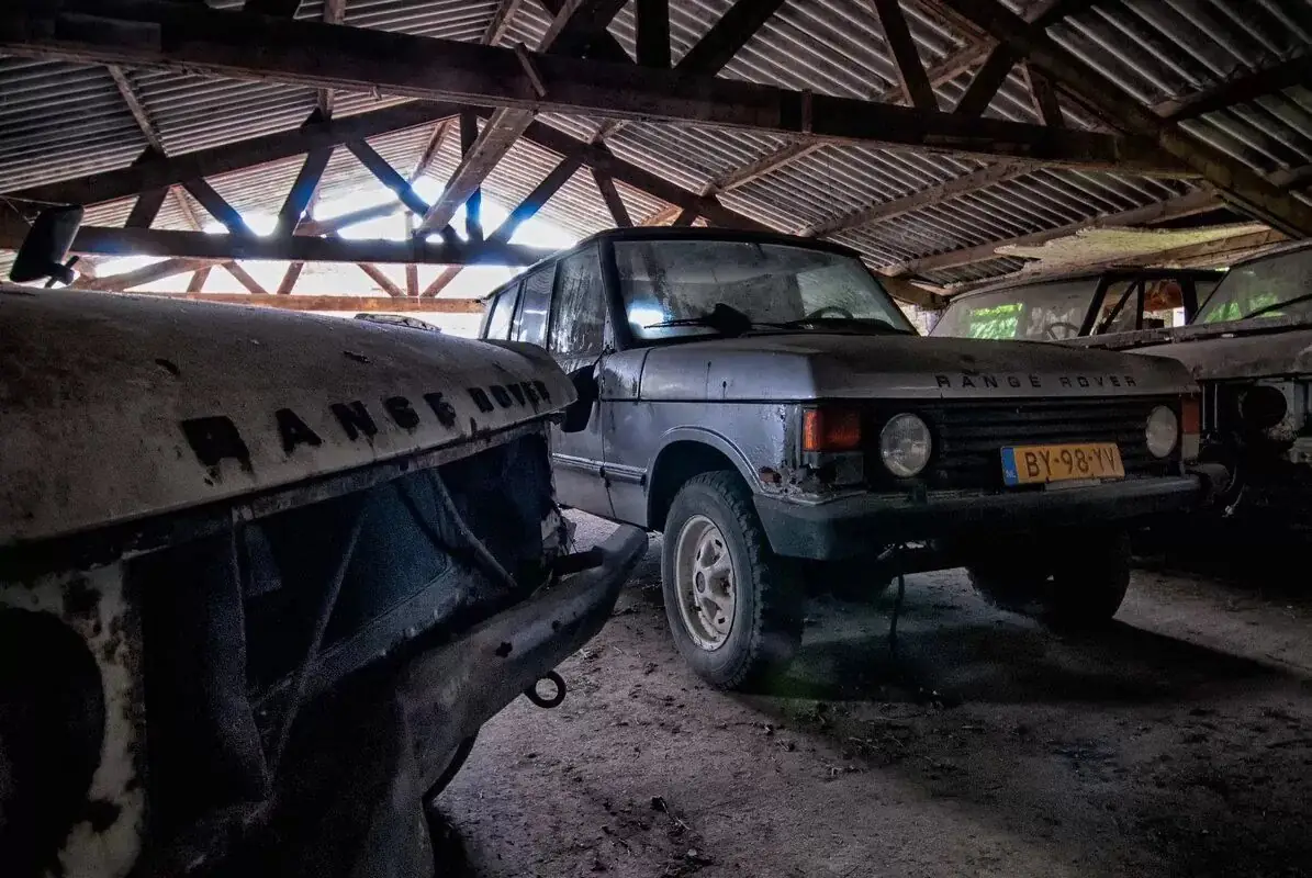 Цю приголомшливу знахідку з черговим цінним вмістом пощастило відшукати в Нідерландах. Там у залишеному старому сараї з цегляними напівзруйнованими стінами знайшли більше десятка класичних Range Rover, які нікому не потрібні. Там же іржавіли ще кілька автомобілів інших марок.