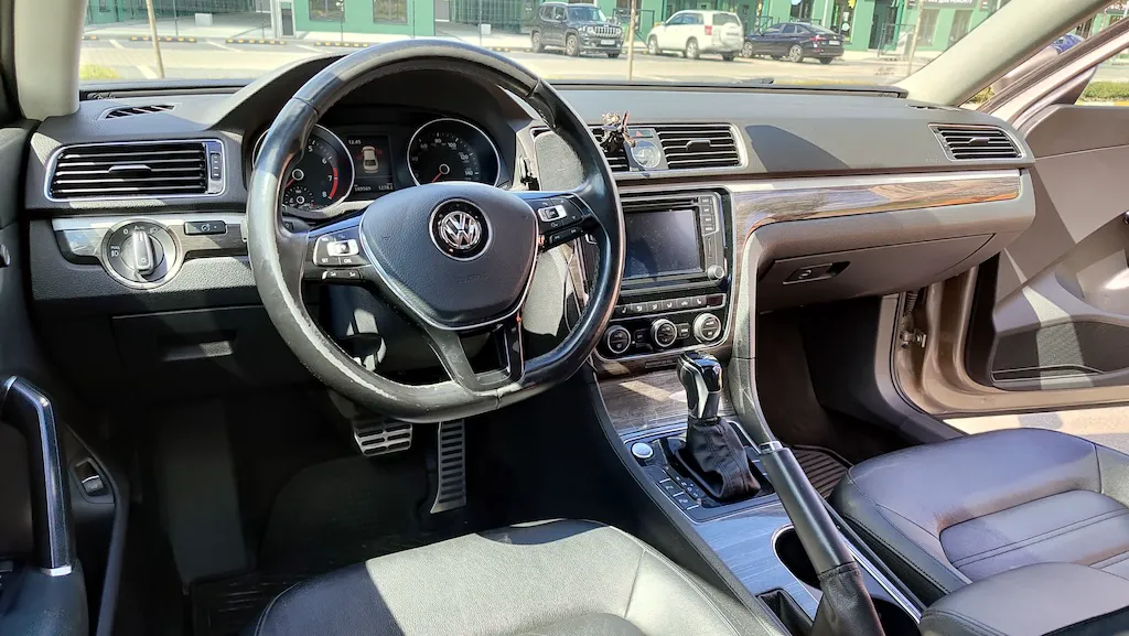 Салон Volkswagen Passat NMS за архітектурою дуже нагадує європейську версію, проте матеріали оздоблення помітно простіші. Це не мінус, а радше компроміс, який дозволив зробити авто дешевшим для покупців у США.
