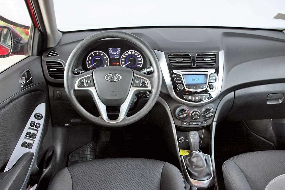 Комплектації «Акцента» в цьому поколінні бувають небідні – аж до електропідігріву керма та лобового скла. Щоправда, це стосується не всіх екземплярів на вторинному ринку. Проте багато дорогих версій порадують незвичайними для компактних моделей опціями: мультикермом, оптитронним щитком приладів, підігрівом зони передніх двірників, датчиком світла, світлодіодними ходовими вогнями і лінзованою передньою оптикою.