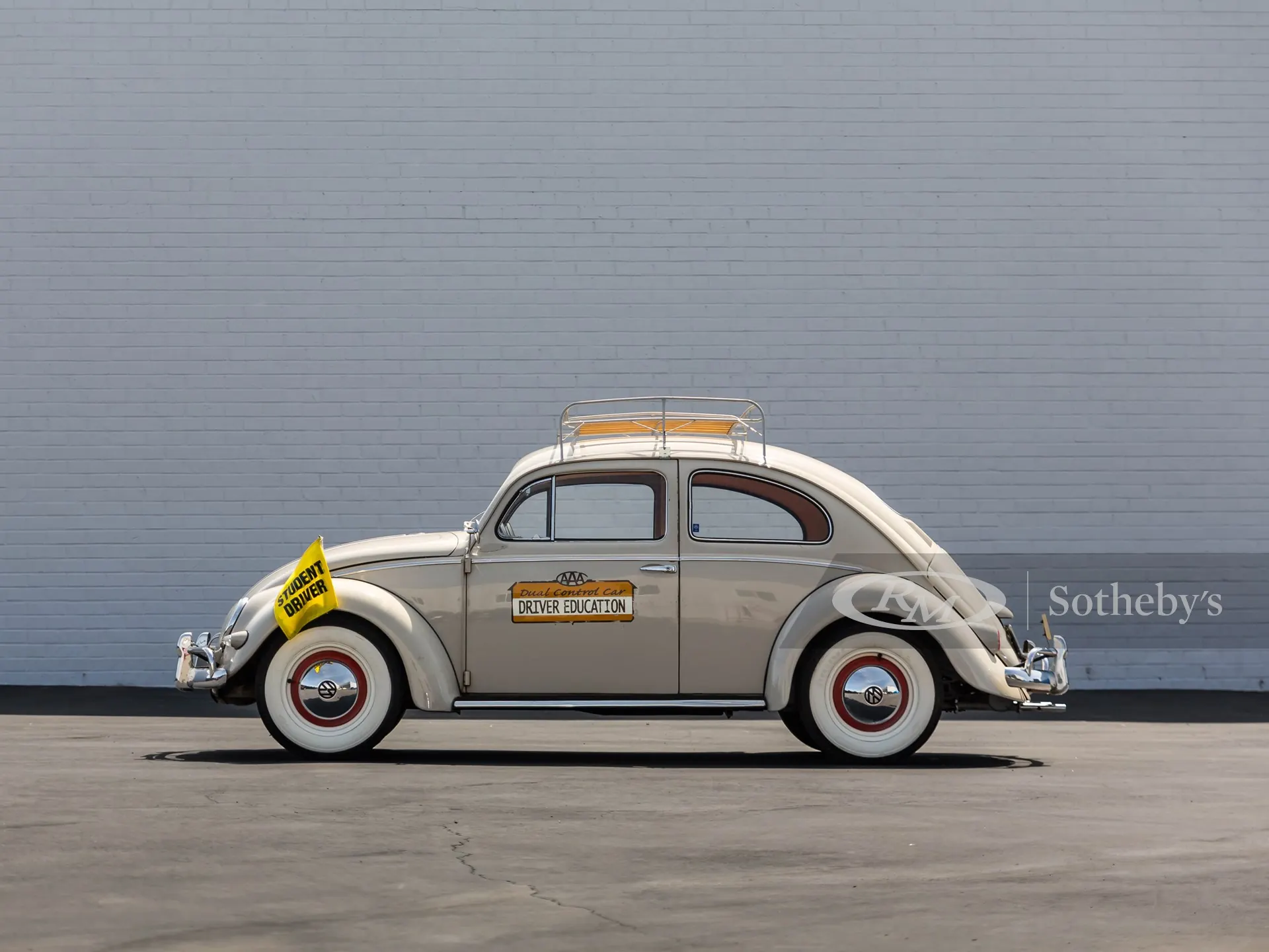 Один из экземпляров VW Beetle выставили на аукцион RM Sotheby's. Особенностью этого Жука является наличие в салоне двух рулей и дополнительного набора педалей. Это говорит о том, что машина использовалась в качестве учебной для подготовки будущих водителей в автошколе. Также об этом свидетельствуют надписи на двери AAA Dual Control Car Driver Education и специальные крепления на крыльях, в которые устанавливались ярко-желтые флажки, которые обозначали ученика за рулем.