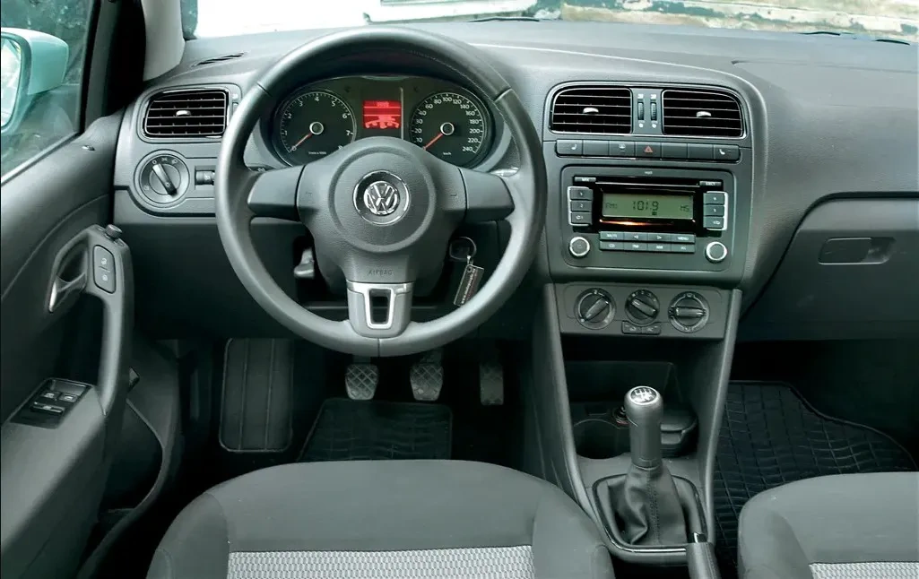 Оздоблення інтер’єру Polo Sedan типово фольксвагенівське – без видатних стилістичних рішень, але при цьому з ергономікою все гаразд. Внутрішнє устаткування не назвеш бідним: навіть у базових версіях вікна передніх і задніх дверцят оснащені електроприводом, до стандартного оснащення всіх авто входять також дві передні подушки безпеки, бортовий комп’ютер, регулювання керма в двох площинах, центральний замок і система ABS. Однак, один просто скандальний прояв бюджетності таки є: конструктори зекономили на кнопках і проводці склопідйомників, встановивши на водійські двері тільки кнопки приводу передніх вікон. Тобто керувати задніми можуть лише пасажири гальорки.