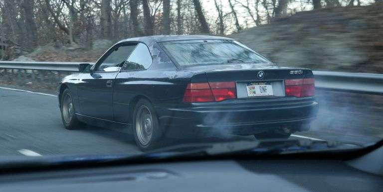 Цей темно-синій BMW 850i з V12 під капотом і механічною коробкою передач, як і раніше, перебуває в далекому від ідеалу стані, але пробна поїздка не виявила якихось значних несправностей.
