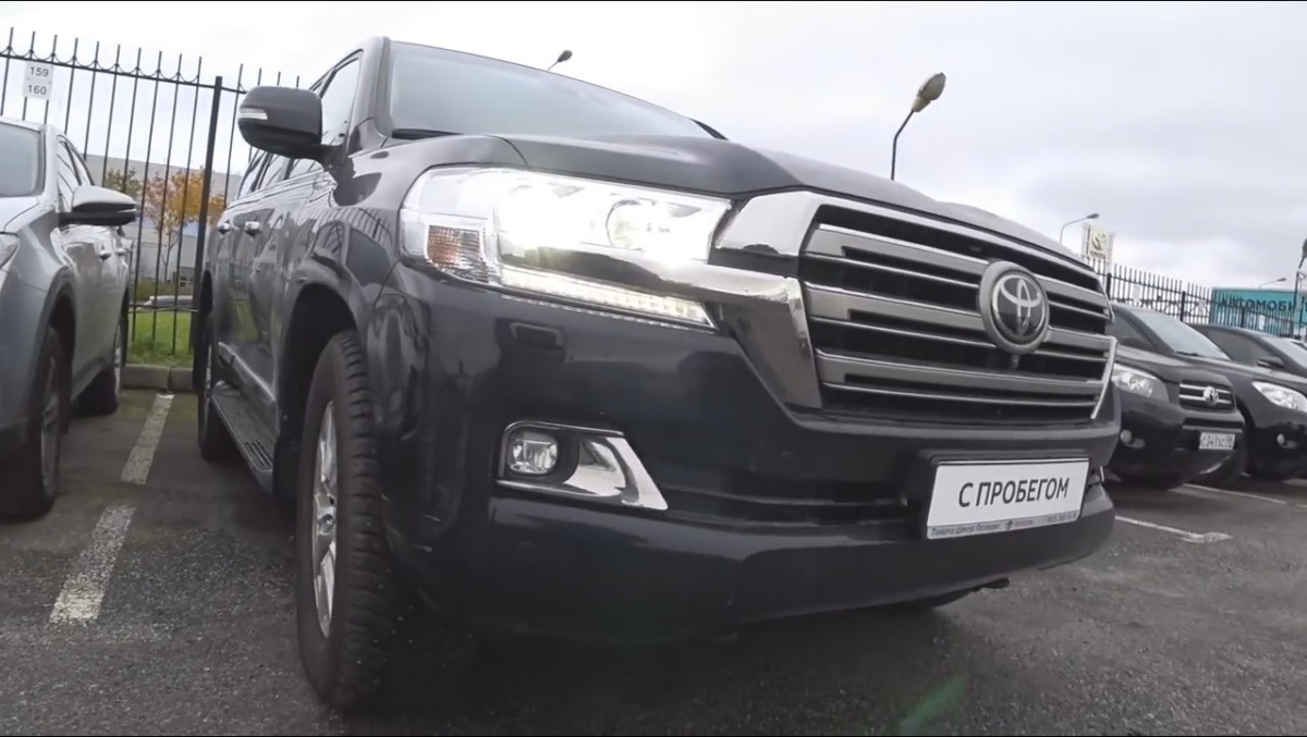 Герой видео – Toyota Land Cruiser 200 2016 года выпуска (куплен в 2017), похоже, немало натерпелся. Пробег в 65 000 км, скорее всего, не соответствует действительности. У внедорожника повреждены пороги, исцарапаны бампера. Толщиномер показал, что с кузовом все же проводили некоторые манипуляции, а также было заменено стекло.