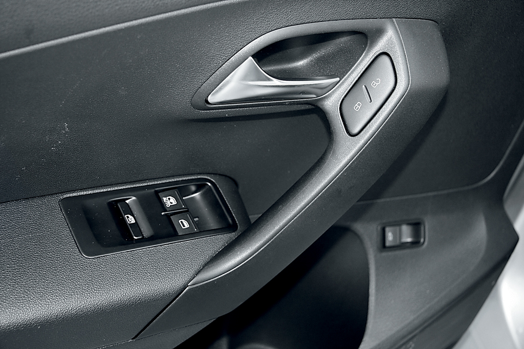 Дизайн інтер’єру Polo sedan схожий з хетчбеками і відрізняється від салону «німців» лише дешевшим твердим пластиком, не таким дорогим оздобленням, гіршою шумоізоляцією. Але при цьому пластикові деталі не рипучі, а обшивка має непогану зносостійкість. Водночас бюджетність «росіян» видає сумнівна економія на кнопках керування склопідйомниками. Так, незважаючи на те, що навіть у базових версіях вікна передніх і задніх дверцят оснащені електроприводом, на водійські дверцята встановили тільки кнопки приводу передніх стекол (керувати задніми можуть лише пасажири гальорки). До стандартного оснащення всіх авто входять також дві передні подушки безпеки, бортовий комп’ютер, регулювання керма в двох площинах, центральний замок і система ABS.