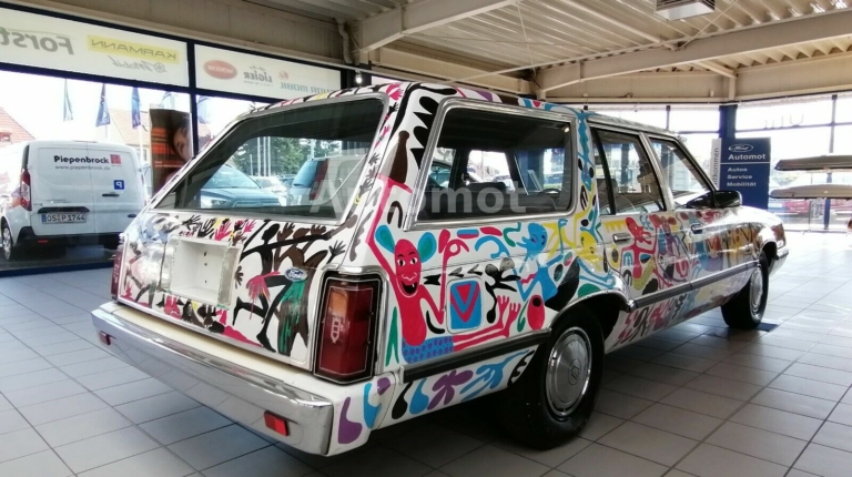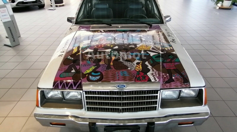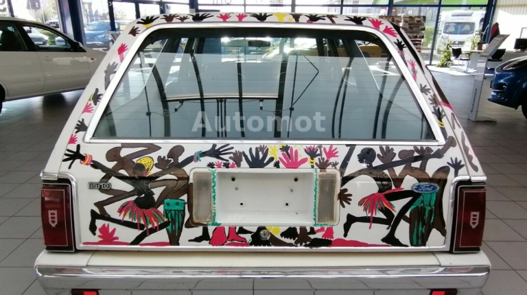 На німецькому автомайданчику Mobile.de з’явилося оголошення про продаж універсала Ford LTD 1984 року випуску. 36-річний автомобіль планують продати за 2 мільйони євро. Така солідна сума зумовлена унікальним розписом на кузові, автором якої є танзанський художник Джордж Ліланга.
