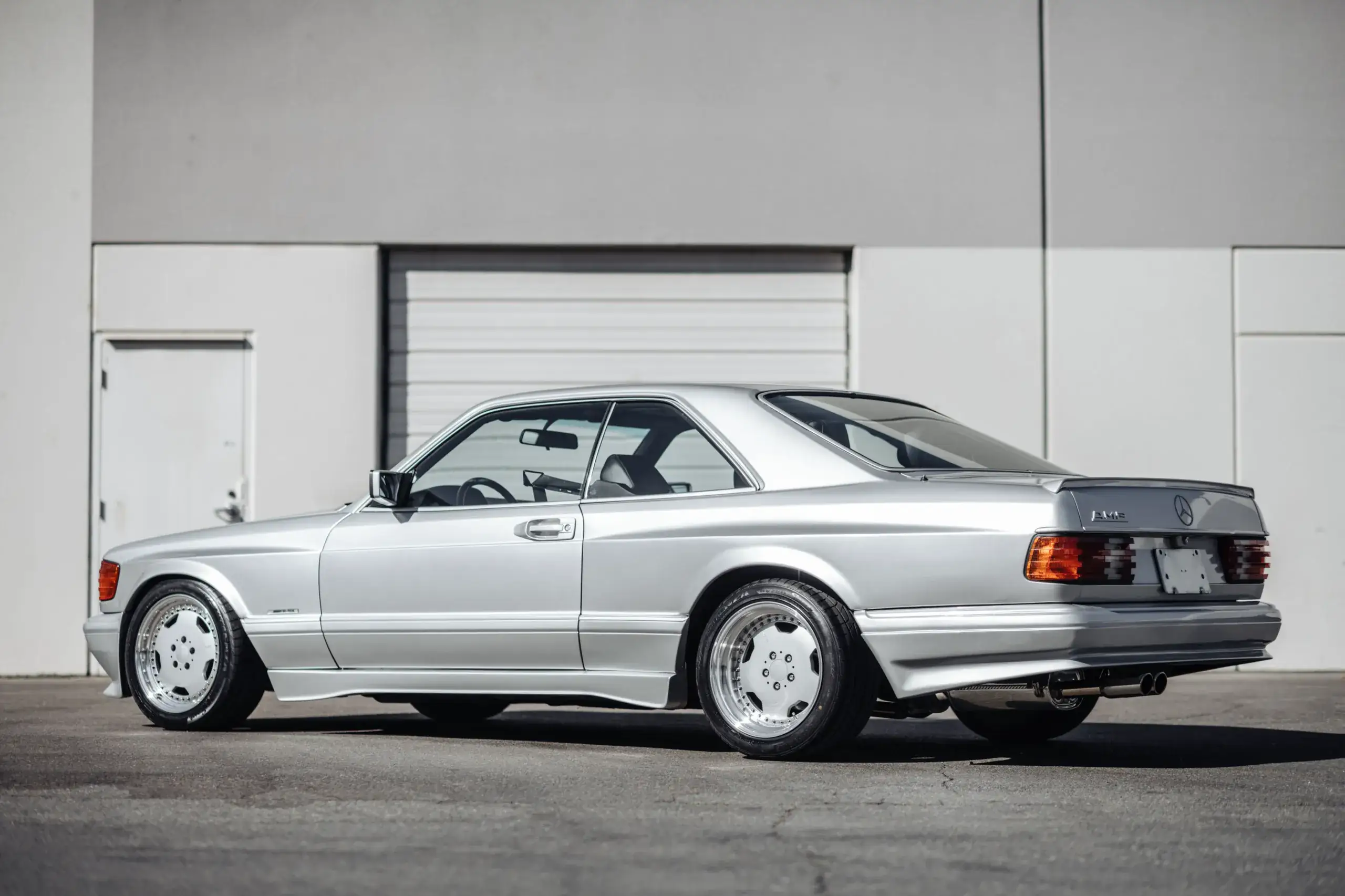 Салон Mercedes 560 SEC AMG отделан черной кожей. В оснащение вошло рулевое колесо Momo M38 и белая приборная панель AMG. Напольное покрытие выполнено из черного ковролина. Помимо непосредственно автомобиля, в лот включены домкрат, запасное колесо, сумка для документов и оригинальная инструкция. Начальную стоимость, а также сколько намерены выручить за резкую модель, пока не оговаривают.